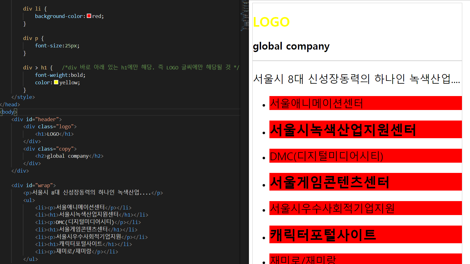 - text-align: 글자를 어느 위치에 정렬할지 (left, center, right)