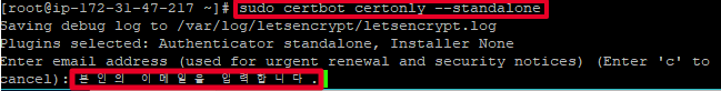 이제부터 standalone 방식으로 인증서를 발급받아 SSL을 적용해보자.